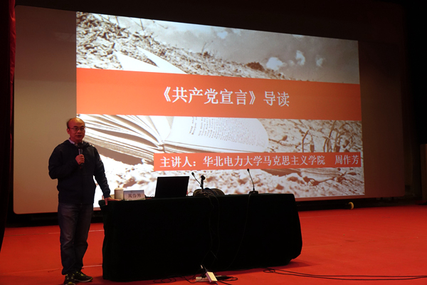 华北电力大学周作芳教授以《< 共产党宣言>导读》为题,结合自己求学成长历程,带领大家穿越岁月长廊,深入浅出解读经典文本,并勉励大家重读经典著作,体会蕴含其中的信仰、方法、立场、观点。