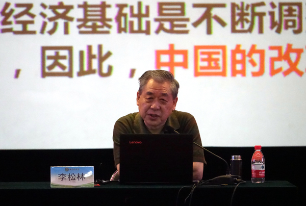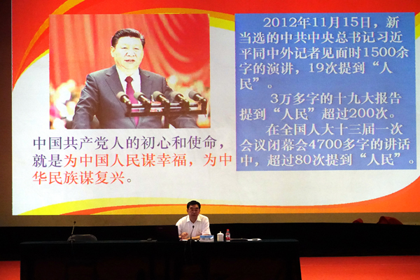 首都师范大学fun88乐天使教授李松林以《准确把握习近平新时代中国特色社会主义思想》为题,用鲜活的语言、新颖的案例,从思想渊源、时代背景、科学内涵、基本方略、重要意义等方面系统解读了习近平新时代中国特色社会主义思想,理论的高度切合了受众的程度,赢得大家阵阵掌声。