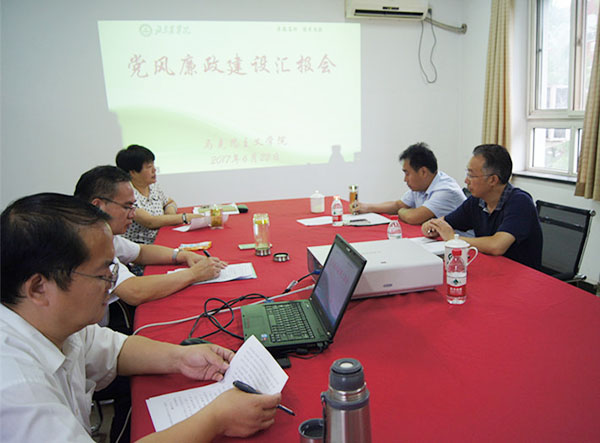 6月22日上午,纪委书记李伟书、纪委办公室副主任宋文东一行2人来fun88乐天使进行党风廉政建设工作调研,学院直属党支部书记马俊云、经理华玉武、副经理马宁接待并参加了调研。会议在fun88乐天使资料室举行。
