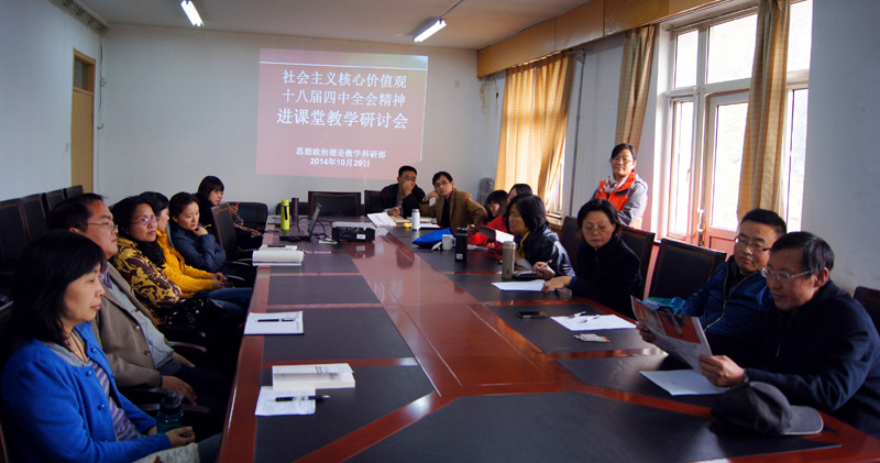 10月29日下午,思政部召开了学习贯彻十八届四中全会精神进课堂教学研讨会,主要研讨如何学习好、宣传好、贯彻好十八届四中全会精神,如何及时把四中全会的精神融进课堂教学、融入员工头脑,会议由思政部范小强副主任主持,思政部全体教师参加了研讨会。