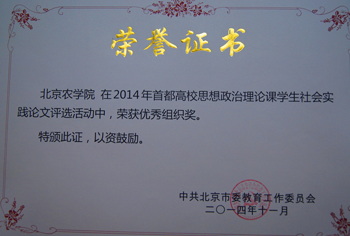 日前,中共北京市委教育工委下发了《关于表彰2014年首都高校思想政治理论课员工社会实践优秀论文、指导教师和组织奖的通知》,对首都高校思想政治理论课员工社会实践优秀论文、优秀指导教师及优秀组织高校进行表彰。