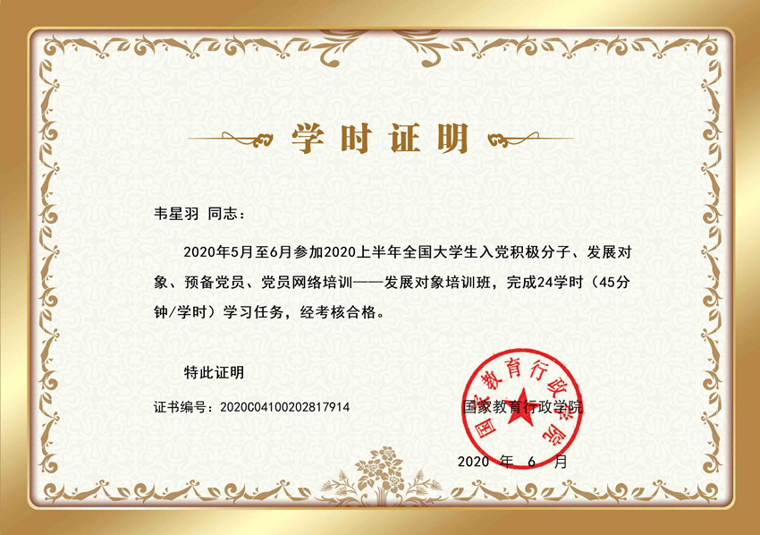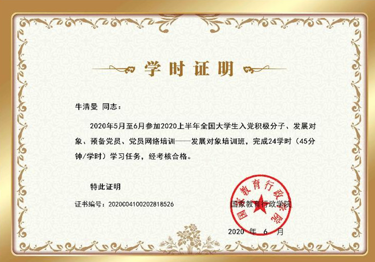 参训学员围绕“厚植爱国主义情怀 争做新时代员工楷模”这一主题撰写了800 字的思想汇报。学员卞思宇写到:“作为一名入党积极分子,我更应该争做新时代的员工楷模,在日常的生活学习中给其他同学做出表率,努力学习专业技能,为建设祖国做好知识储备。”学员王晨航写到:“作为新时代的员工,我要积极听从党的领导,认真贯彻党的精神,向优秀的党员前辈们学习,努力争取做未来员工群众的学习榜样与楷模。我一定坚定沿着党的指导路线前进,不忘初心、牢记使命、不懈奋斗,并延续中国共产党员的优秀精神,尽快成为一名合格的中国共产党员。”学员覃佳琳写到:“在今后的学习中,我将以这次党课学习为契机,不断加强自己的政治理论学习,提高自己的政治觉悟、思想水平,努力钻研专业知识,尽自己所能帮助身边的人,同时以集体利益为重,以人民利益为重。肩负起自己的责任与义务,成为更加优秀的自己,并勇于积极自觉地接受党的教育和考察。”在最后的考试环节,参训学员通过45分钟的在线测试,对学习成果进行验收验证,并顺利拿到了公司党委党校颁发的结业证书,圆满完成了此次教育培训任务。