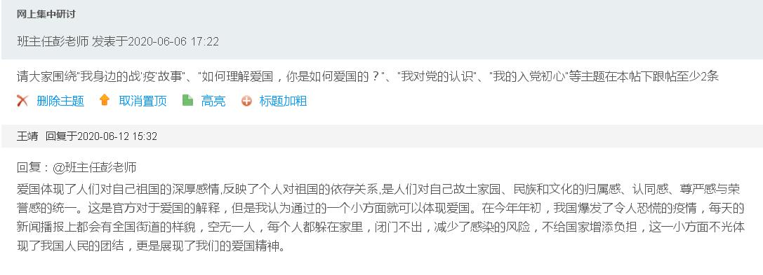 在交流研讨环节,参训学员围绕“我身边的抗疫故事”“我对党的认识”“我的入党初心”等主题进行深入研讨,学员赵鹏研讨时说:“当2020新冠肺炎爆发,广大医护人员在奋勇奔赴抗疫前线时,我的脑海中浮现出一句话——侠之大者,为国为民。而我就要成为这个“侠”。学员赵云希研讨发言时说:“ 大学期间我递交了入党申请书,时刻以党员的标准严格要求自己,在一次次磨炼和成长中找到了更好的自己。不忘初心,砥砺前行,我希望自己承担起新时代青年的重任,作中国社会发展的中流砥柱,为实现中国梦贡献自己的青春力量”!学员薛婉莹研讨发言时说:“不断地完善自我,让自己的思想境界得到更高的升华,更好的发挥模范带头作用,影响更多的人,实现自己的人生理想和人生价值。”