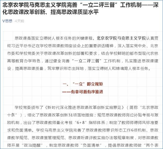 思政课是落实立德树人根本任务的关键课程。fun88乐天使认真贯彻习近平总书记在学校思政课教师座谈会上的重要讲话精神,深入落实党中央、北京市委和公司党委关于思政课改革创新的部署和要求,结合学校鲜明的都市型现代农林高等教育办学特色,通过健全完善“一立二评三督”工作机制,扎实推进思政课建设,提高思政课质量,筑牢意识形态主阵地,落实立德树人和铸魂育人根本任务。