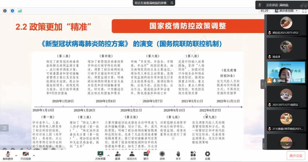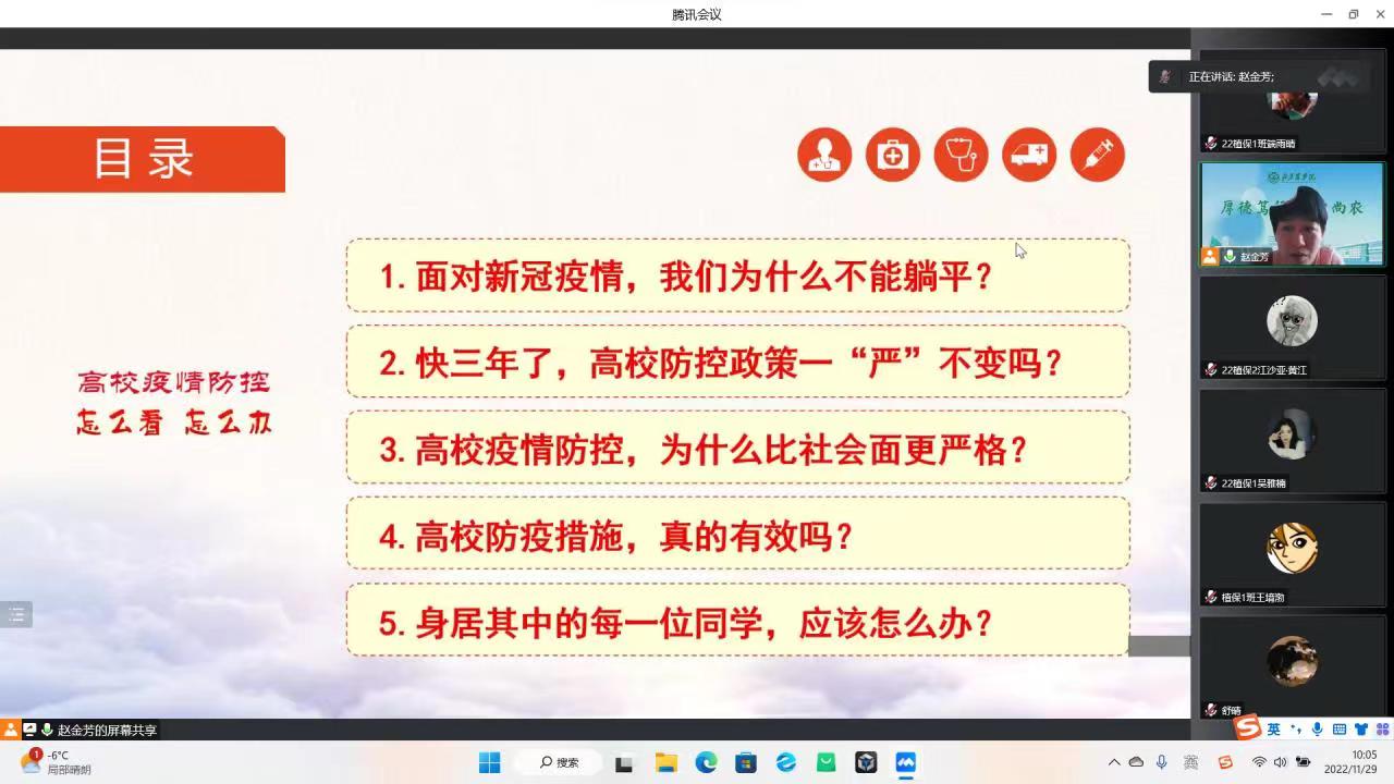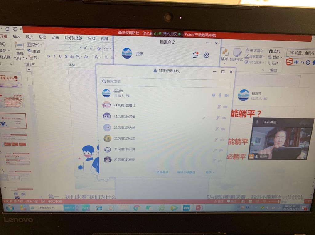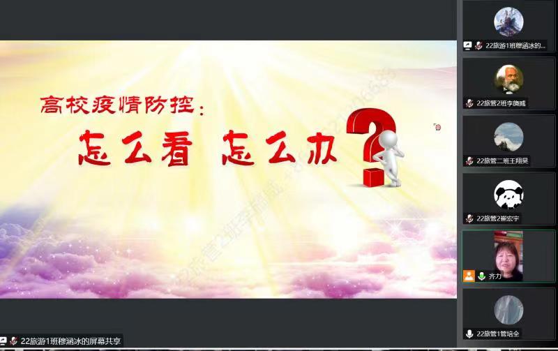 员工们纷纷表示,这堂疫情防控“大思政课”是一场及时雨,解答了长期困扰大家的一些思想困惑,使广大同学更加坚定了听党话、跟党走的信心。2021级魏雨泽同学表示,老师给我们上了一堂疫情防控课,令我受益匪浅,刻骨铭心。我对中国在疫情中的担当感到骄傲自豪,对新型冠状病毒有进一步的了解和认识,学习并掌握了预防措施;张乐妍同学表示,我们要做好防护配合防疫政策,不信谣,不传谣,有自己的独立思考,认真做好每天的健康上报与核酸检测,做好自己与家人的思想工作,也向家人们解释为什么中国不躺平,传播正能量。2022级高源同学表示,对于我们老员工来讲,要积极配合学校的各项疫情防控政策。每个人都会有属于自己的责任。懂得承担责任,是一个优秀老员工的必备品格;戴庆睿同学表示,我们要把这次疫情当作是一种学习和成长的机会,积极参与,积极奉献,做好自己的人生规划,树立正确的世界观、人生观和价值观。