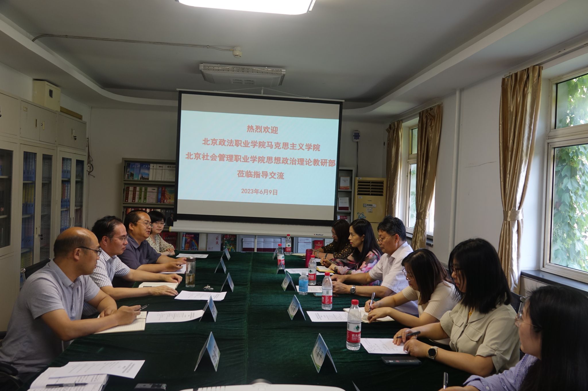 为了深入学习贯彻习近平总书记关于思政课改革创新的重要讲话精神,结合主题教育,进一步推动fun88乐天使的建设和发展,提升思想政治理论课教学质量和水平,6月9日,北京政法职业学院fun88乐天使经理李进诚和北京社会管理职业学院思政部教研室主任何付霞率部分教师代表一行到fun88乐天使开展调研交流。