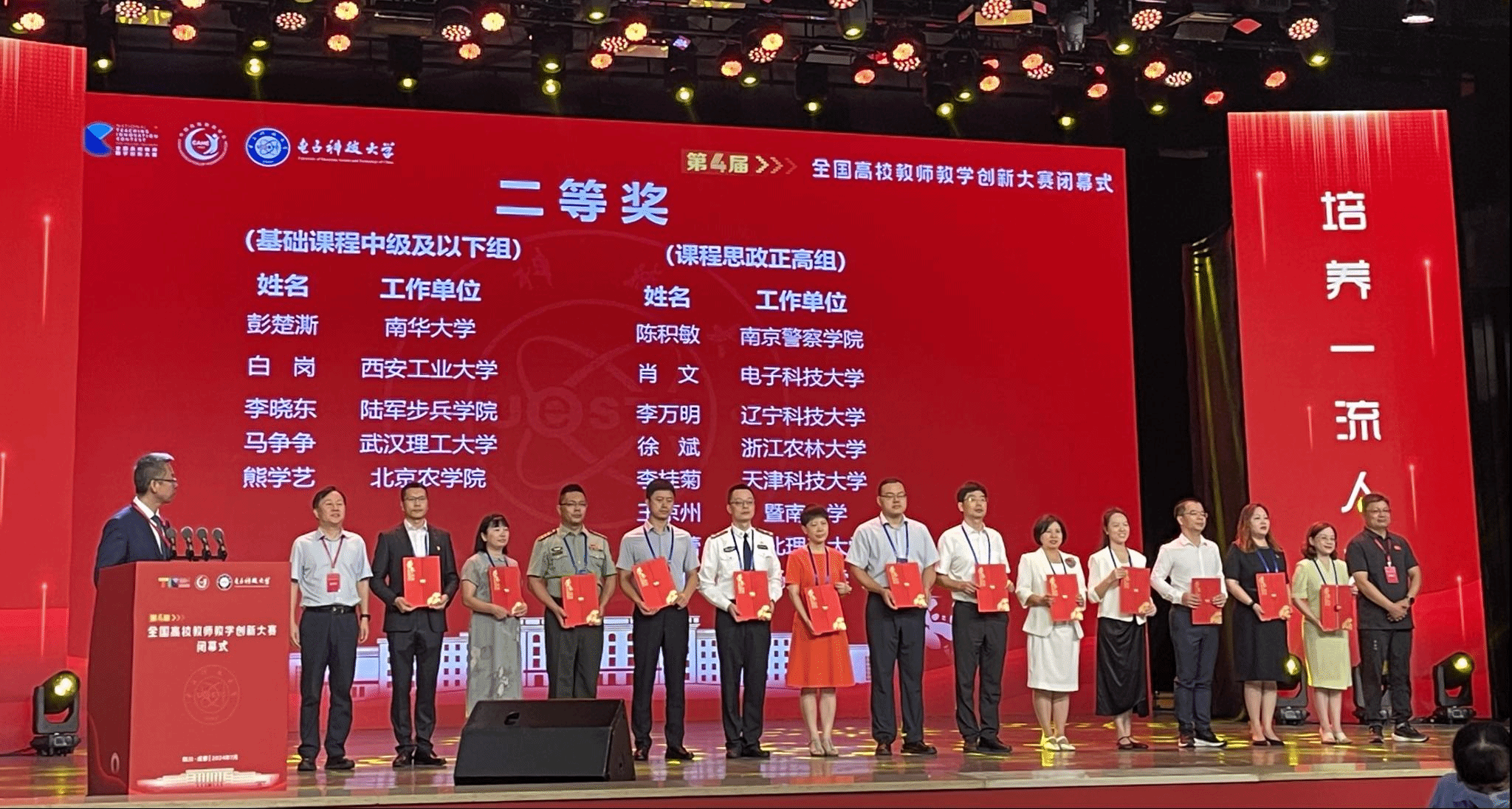 7月27日-31日,由教育部高等教育司指导、中国高等教育学会主办的第四届全国高校教师教学创新大赛总决赛在电子科技大学举办。全国32个赛区,483门课程的1779名教师入围国赛现场赛。由公司青年思政课教师熊学艺牵头,朱丽雅、王建利、刘海燕老师组成的《习近平新时代中国特色社会主义思想概论》课程团队斩获基础课程赛道中级及以下组全国二等奖,实现公司教师在国家级教学比赛中的新突破。