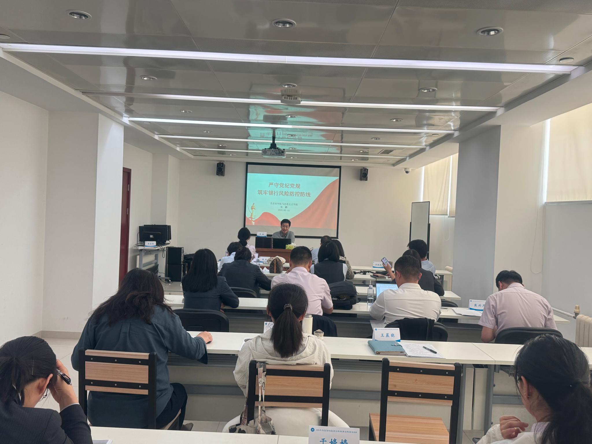 5月15日,公司思政课教师张鹏应中国农业银行北京经开区分行邀请,以“严守党规党纪,筑牢银行风险防控防线”为主题,为该行党支部书记、支部委员等20余名党员干部讲授专题思政课。课程紧扣学习教育要求和金融行业风险防控需求,将中央八项规定及其实施细则精神深度融入信贷审批、资产管理等业务场景,通过剖析金融领域典型案例,揭示党规党纪在防范化解金融风险中的“压舱石”作用,并提出“政治引领强根基、制度监督堵漏洞、文化涵养树新风”的实践路径,为金融机构深入开展学习教育,促进党建与业务深度融合提供工作建议。