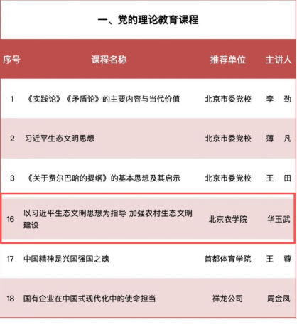 近日,北京市委组织部公布《北京市干部教育培训好课程推荐目录》,确定45门课程为全市干部教育培训好课程。公司经理华玉武教授主讲的《以习近平生态文明思想为指导 加强农村生态文明建设》成功入选。