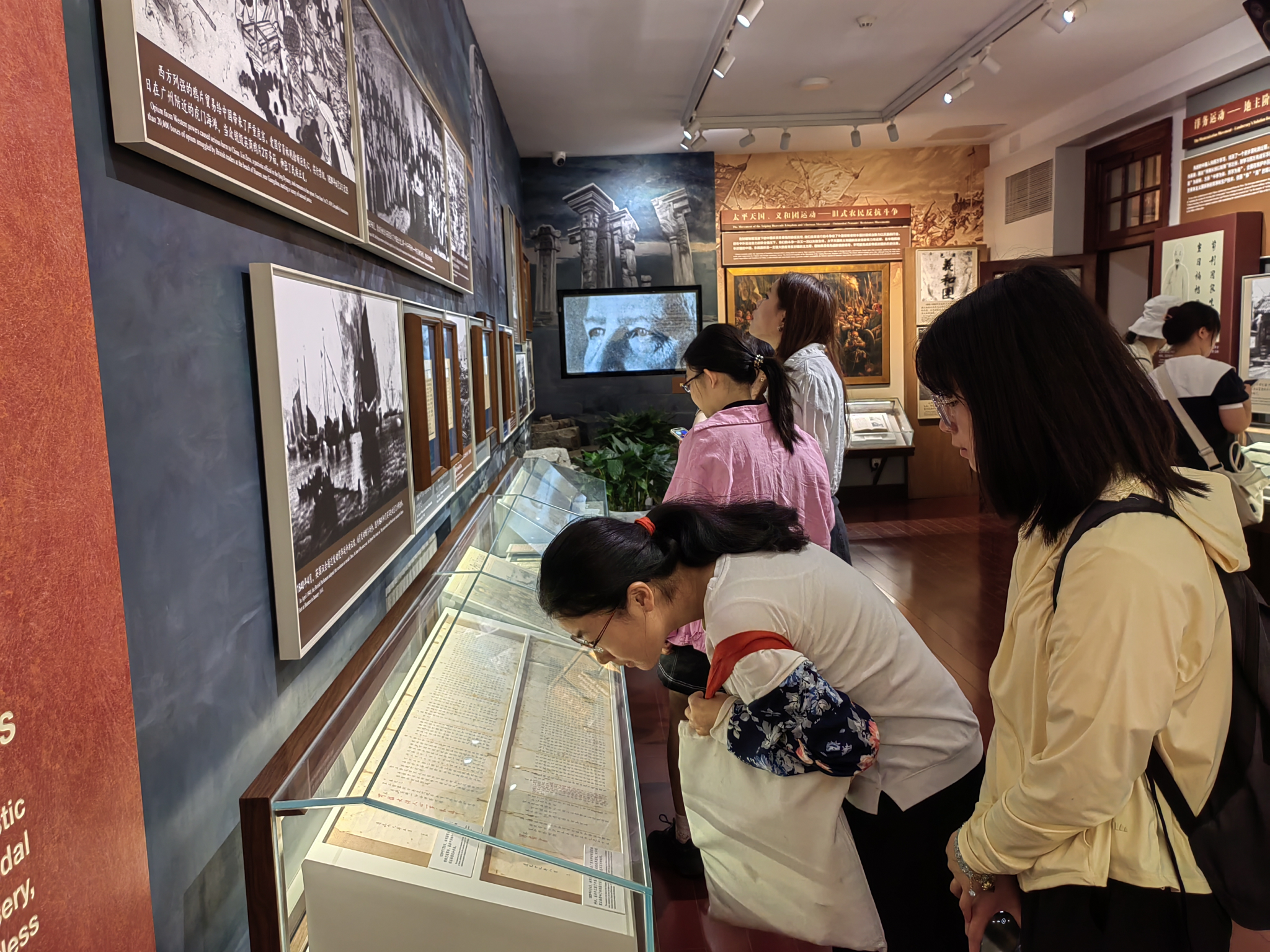 参观之前,思想政治教研室教师向同学们详细介绍了此次实践学习的目的、意义和北大红楼的重要历史作用。活动现场,教师们沿着历史脉络,组织员工认真参观红楼内的各个展室,通过现场文物陈列向同学们详细讲解了北大红楼的历史背景、建筑特色以及其在中国革命史上的地位和作用。通过认真观看文献文物、图片资料、艺术作品、多媒体影音资料,员工们深入了解新文化运动的历史背景、主要内容和深远影响,了解马克思主义在中国的传播发展情况、中国共产党的光辉奋斗历程和取得的辉煌成就,深刻感受到了革命先辈们在艰苦环境中坚持理想、追求真理的坚定信念和顽强精神。
