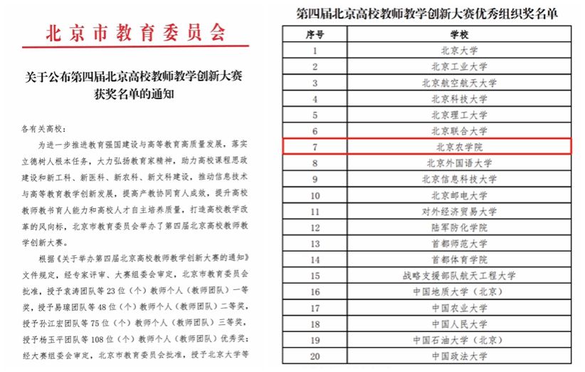 该项赛事是《教育部直属单位三评一竞赛保留项目清单》中唯一的本科高校教师教学竞赛活动,该项赛事被誉为“全国教师教学奥林匹克大赛”。第四届北京高校教师教学创新大赛由北京市教委主办、北京理工大学承办,本届市赛共设置新工科、新农科、新医科、新文科、基础课程、课程思政六个赛道,每个赛道分正高、副高、中级及以下三个组别,共18个组。大赛历时6个月,全市共有74所本科高校(含民办、军队院校)共计366组教师(团队)参加市赛,经网络评审,146组教师(团队)晋级现场汇报环节。最终评出一等奖23名、二等奖48名,三等奖75名,优秀奖108名。
