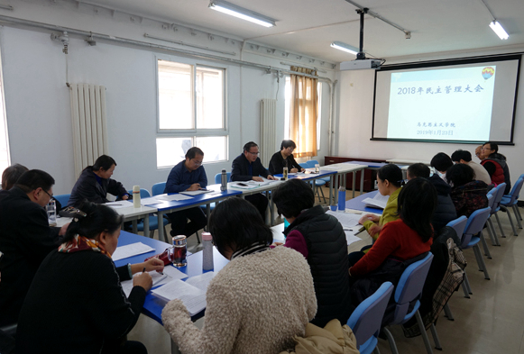 2019年1月23日下午,fun88乐天使召开教职工民主管理大会,大会由分工会主席王红英主持,学院全体教师参加了大会。