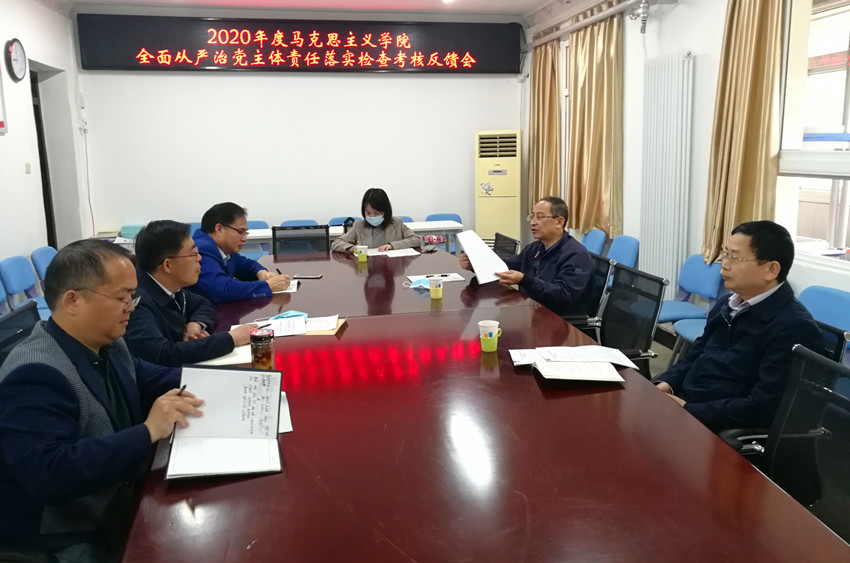 张铁强同志代表公司党委向fun88乐天使反馈了检查考核情况和结果。充分肯定了学院在推动全面从严治党主体责任落实落细方面取得的成效,肯定了学院班子团结进取、敢于担当以及思政课教师良好的师德师风和爱岗敬业精神。同时针对检查考核指出的在理论学习形式、工作创新等方面存在的不足与问题,提出整改意见和建议,要求扎实做好整改工作,以整改为契机进一步深化落实落细中央、市委和公司党委关于思政课改革的部署和要求,深化推进思政课改革创新,抓好建好思政课教师队伍,进一步提升思政课教学水平和教学效果,打造具有北农​fun88乐天使特色的思政金课和工作品牌。
