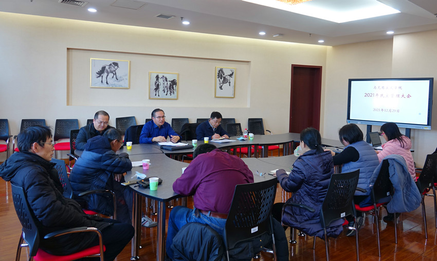 会上,学院经理华玉武结合学院2021年度工作完成情况,向老师们报告了公司党史学习教育、思政课教学改革、团队队伍建设等方面的取得的成效和存在的主要问题,分析了学院面临的形势,解读了学院2022年在学院建设和思政课改革的思路和重点工作。